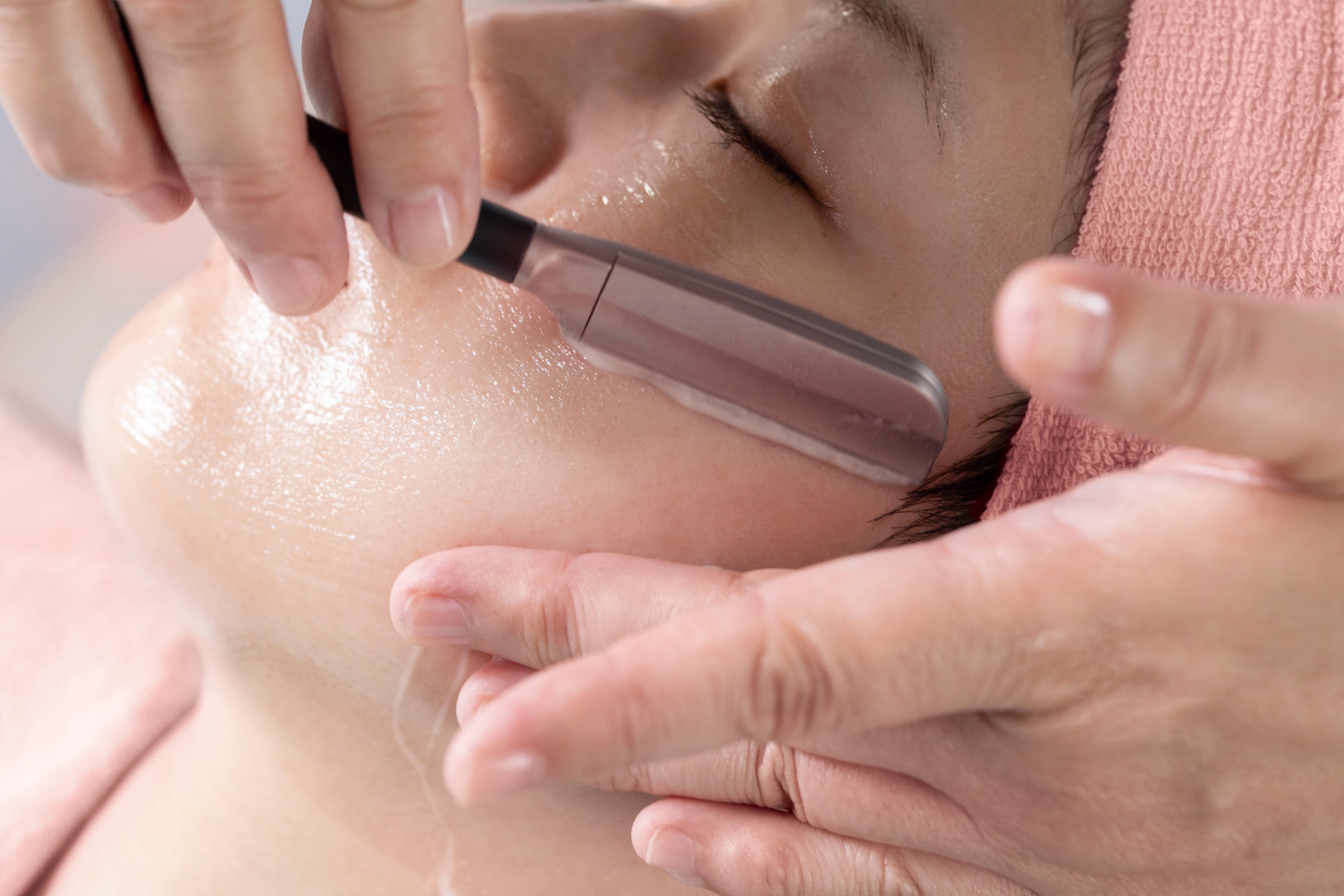 独自のシェービングと角質ケアに特化したスキンケアで古くなった角質やうぶ毛を取り除きます